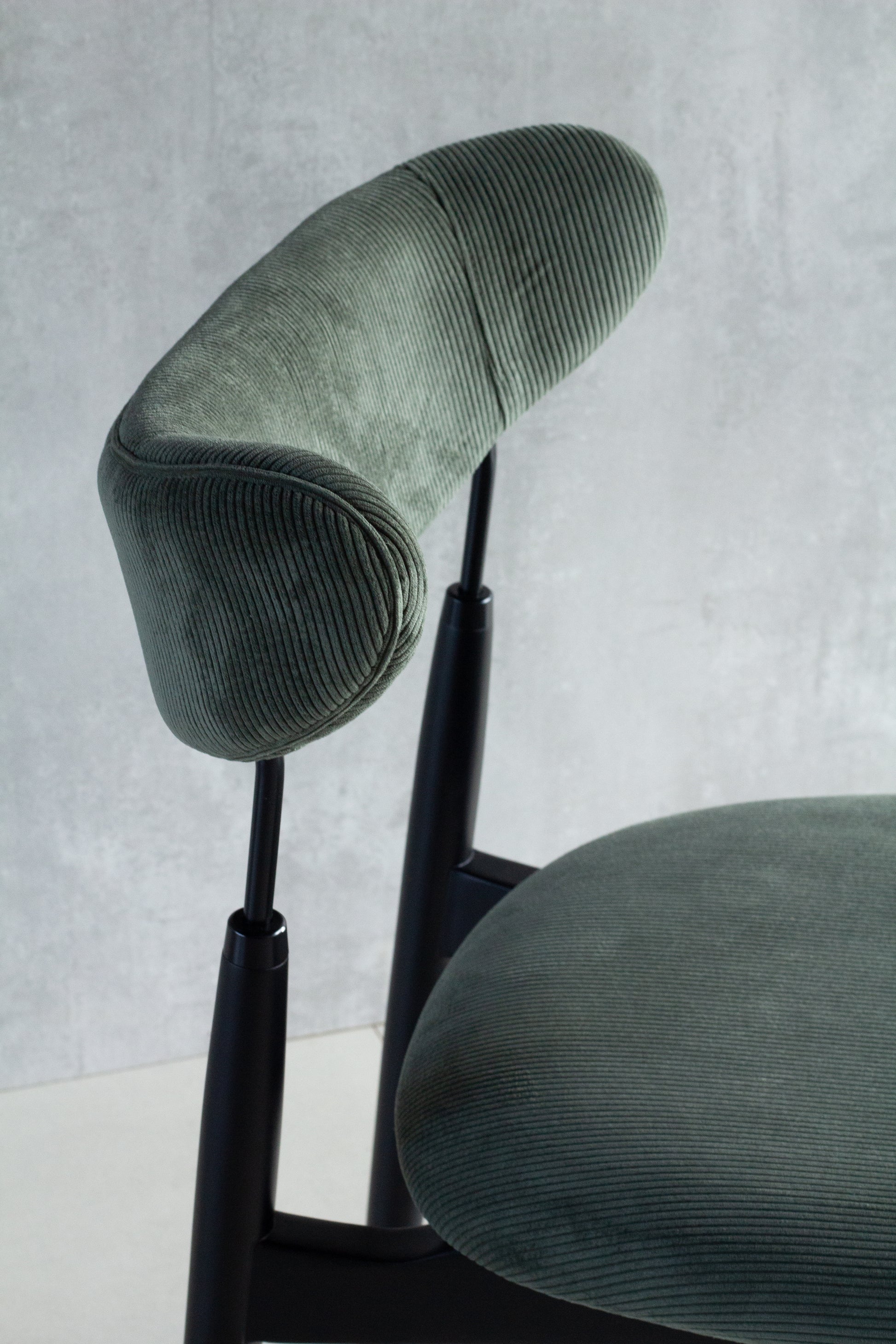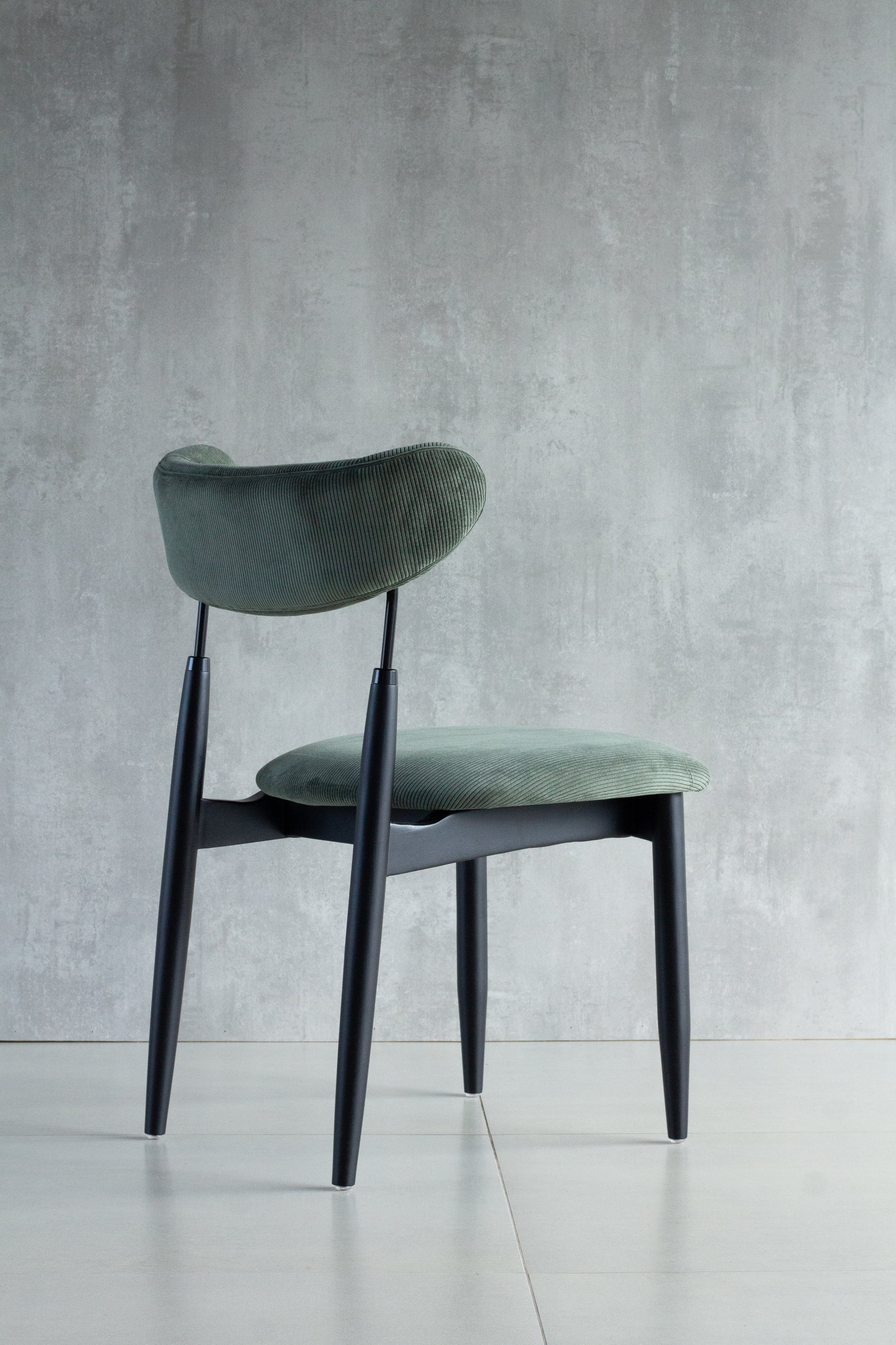 Cadeira Lais Madeira Ebano Metal Preto Assento e Encosto Estofado Tecido AA9004