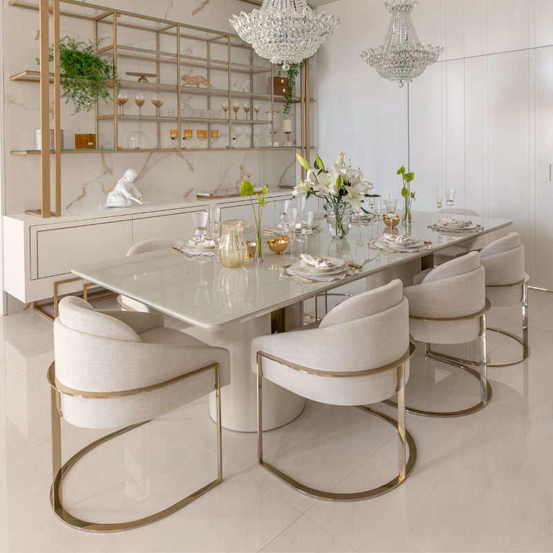 Cadeira Louise Inox Cor Golden Encosto e Assento Estofado Tecido 1818F
