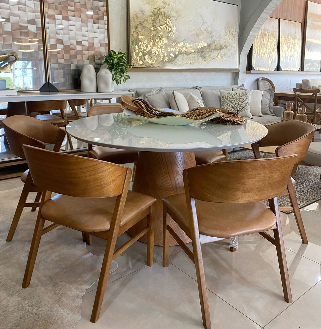 Mesa de Jantar Redonda 140cm Base Montreal Madeira Maciça - 5 Lugares