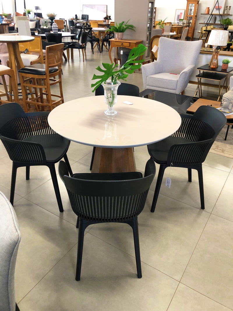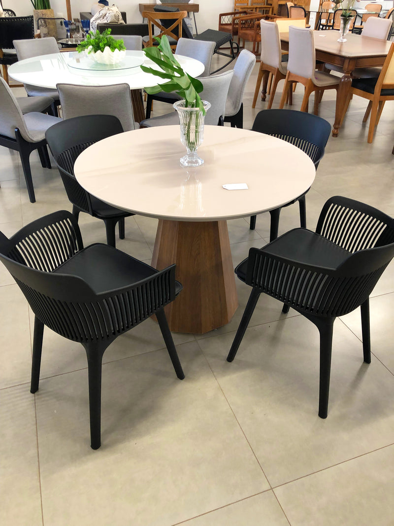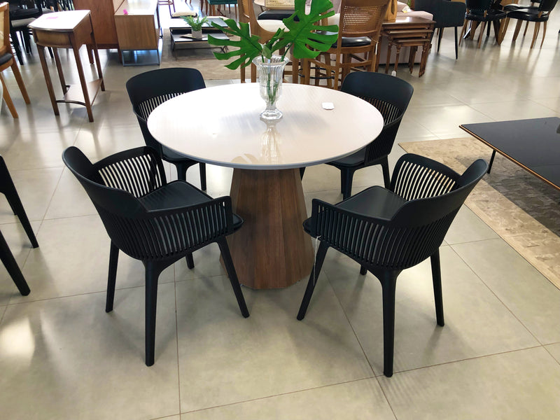 Mesa de Jantar Redonda 100cm Base Kobe Madeira Maciça - 4 Lugares
