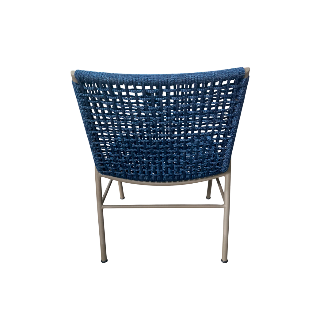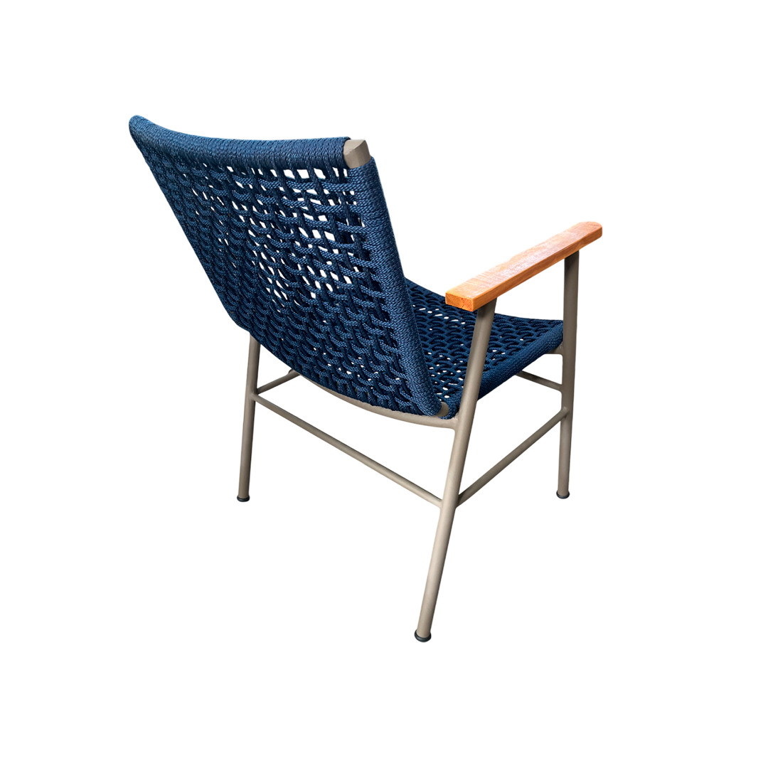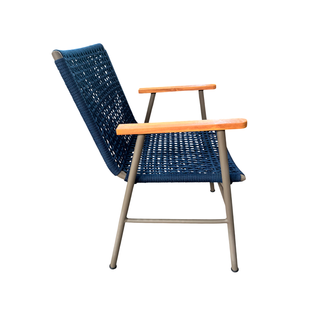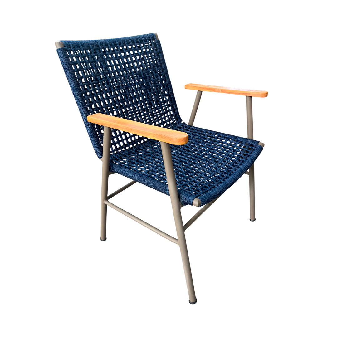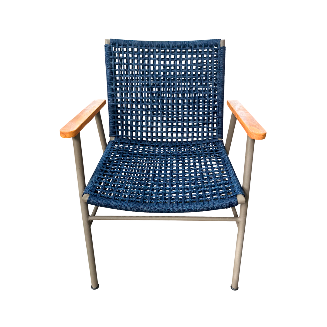 Cadeira Seiva com Braço Alumínio cor Fendi e Corda Náutica cor Azul Marinho Quadriculada