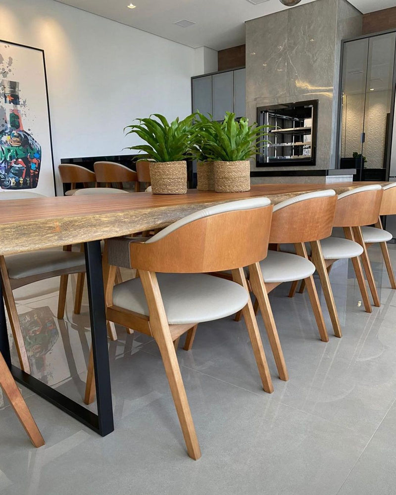 Cadeira Zaki Madeira Preta Assento Estofado Tecido Linho Bege 001A - Toth Loja de Móveis Presidente Prudente
