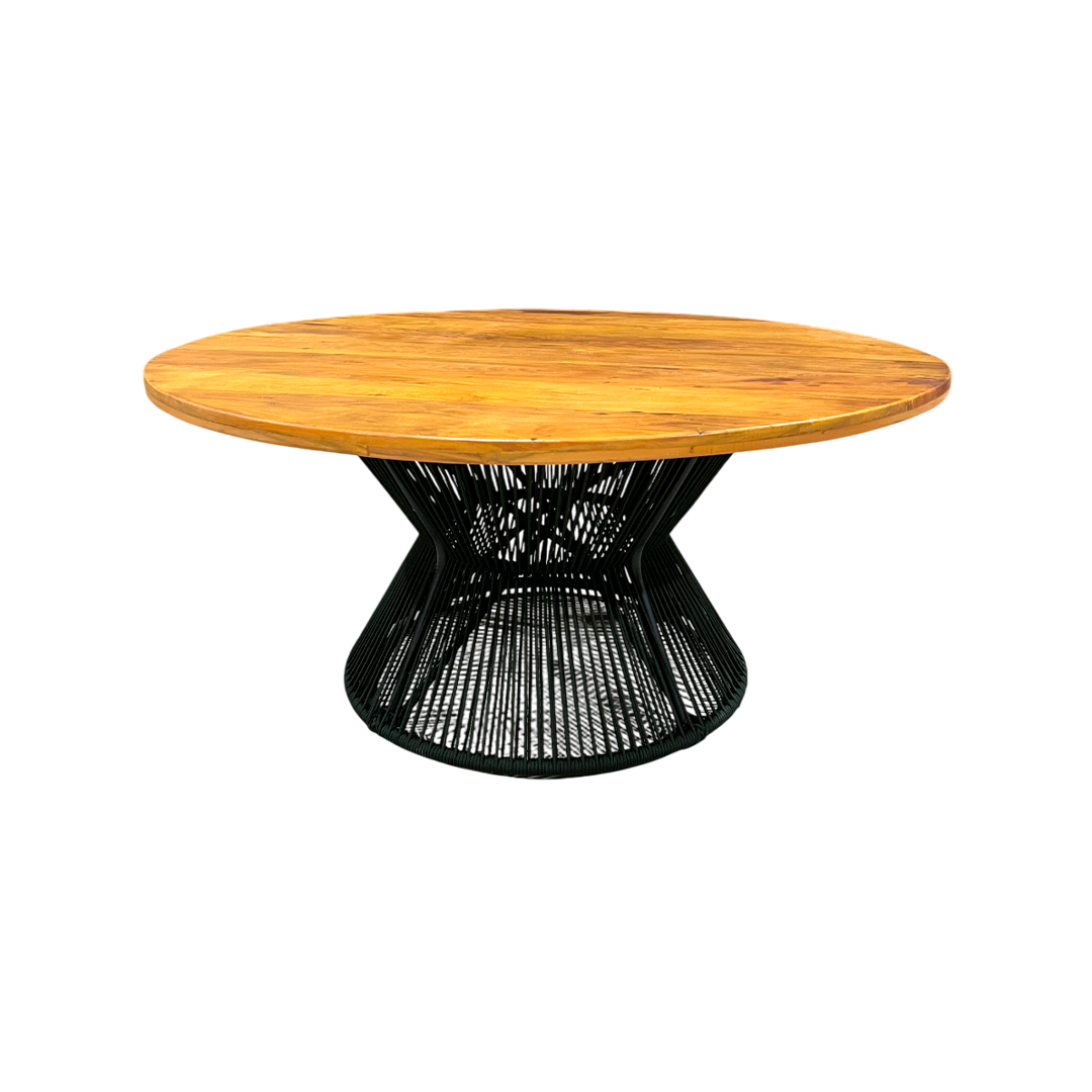 Mesa Redonda Corbelle 160cm Tampo Madeira Madeira Maciça Peroba-Rosa Alumínio e Corda Náutica Cor Preta