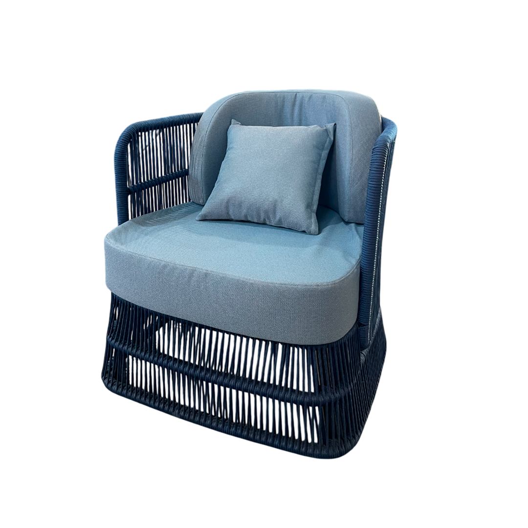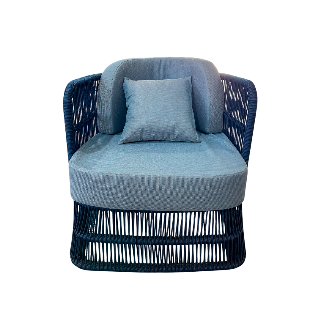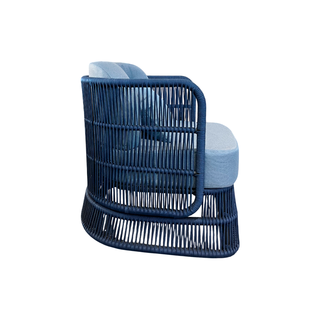 Poltrona Dalas Estofada Alumínio Preto Corda Náutica cor Azul Marinho Malha Zig-zag