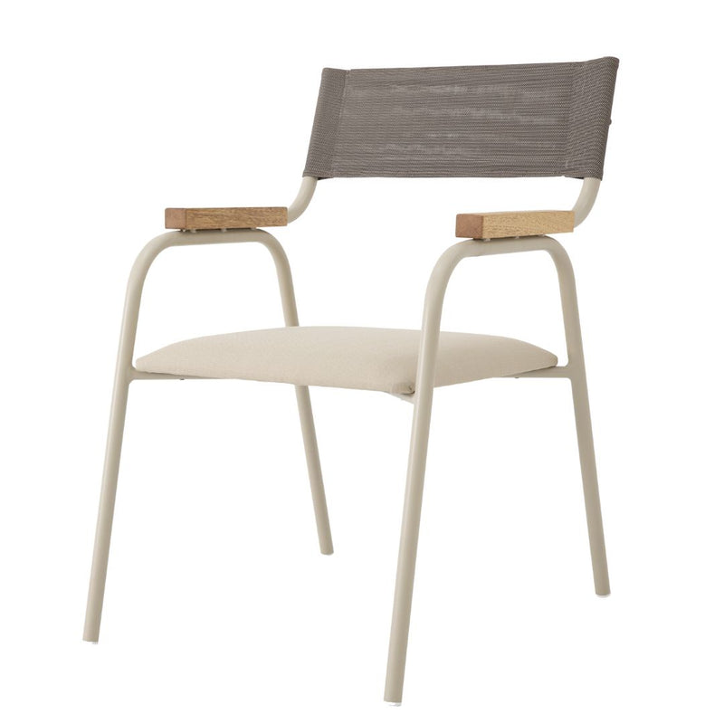 Cadeira Sicília Alumínio Cor Bege Corda Náutica Cor Areia Tela Cor Palha Mesclado Assento Estofado Tecido Quaker Bege