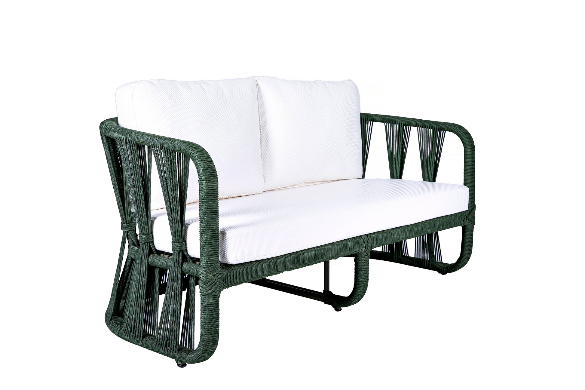 Sofá Bianca Estrutura Em Alumínio Corda Náutica Cor Verde Musgo Estofado Fiama Náutico Branco