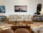 Sua versatilidade permite que se adapte facilmente a diferentes estilos de decoração, tornando-o uma peça-chave para criar ambientes convidativos e aconchegantes. O sofá é perfeito para a combinação de estética e funcionalidade.